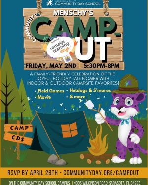 Join us NEXT FRIDAY for Menschy’s Community Camp Out! As part of The Patterson Foundation’s Suncoast Remake Learning Days, enjoy a family-friendly evening celebrating the joyful holiday Lag BaOmer while engaging in indoor and outdoor campsite games & treats!