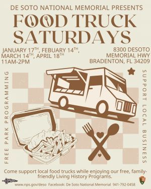 Food Truck Saturdays! One Saturday a month De Soto National Memorial will feature Food Truck Saturdays. Come out on January 17th ...