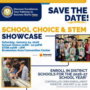 STEM & School Choice Showcase is Saturday, January 24, 2026. School District of Manatee County Explore. Discover. Connect. This is our biggest school ...